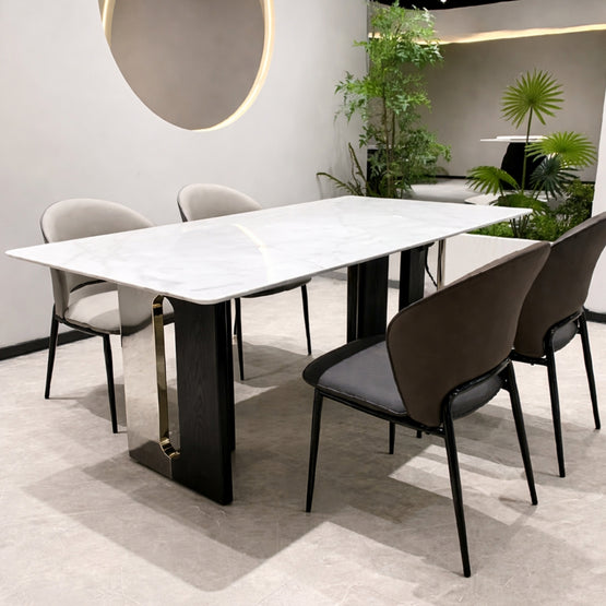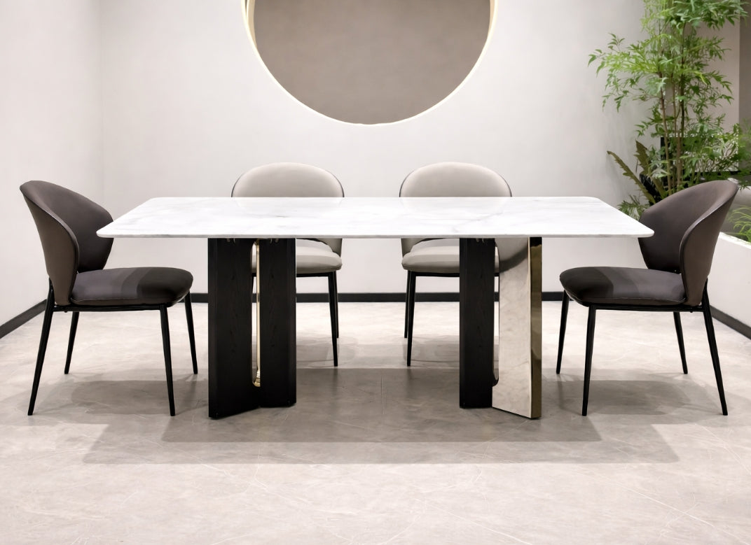 Bàn ăn Ando chinh phục ánh nhìn bằng sự tinh giản đầy chủ đích và cấu trúc thiết kế mang tính biểu tượng. Mặt bàn chất liệu cao cấp kết hợp cùng chân bàn tạo hình vòng khuyết độc đáo, mang đến một tổng thể kiến tạo ấn tượng - nơi vẻ đẹp điêu khắc và sự tinh tế giao thoa, làm bật lên phong cách sống đẳng cấp và khác biệt