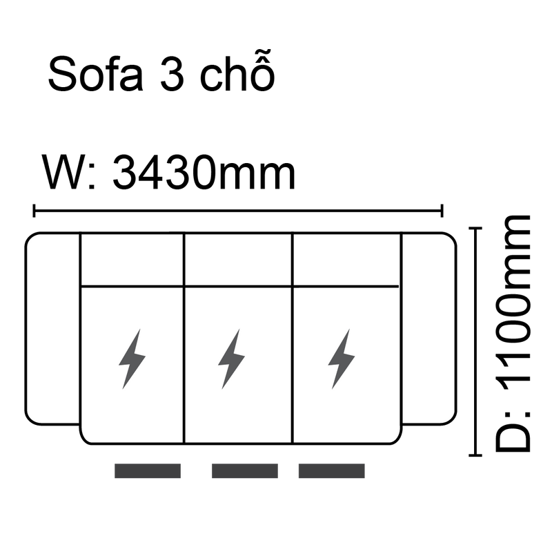 Kích thước ghế 3 chỗ (W-D-H): 343x110x81 cm