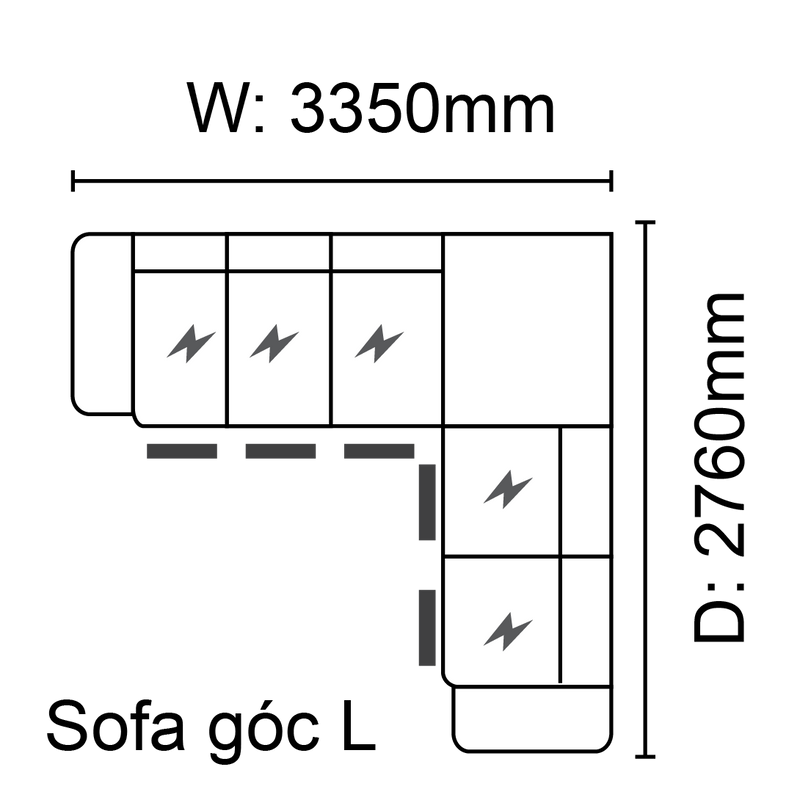 Kích thước size Small (W-D-H): 335*276*81 cm
