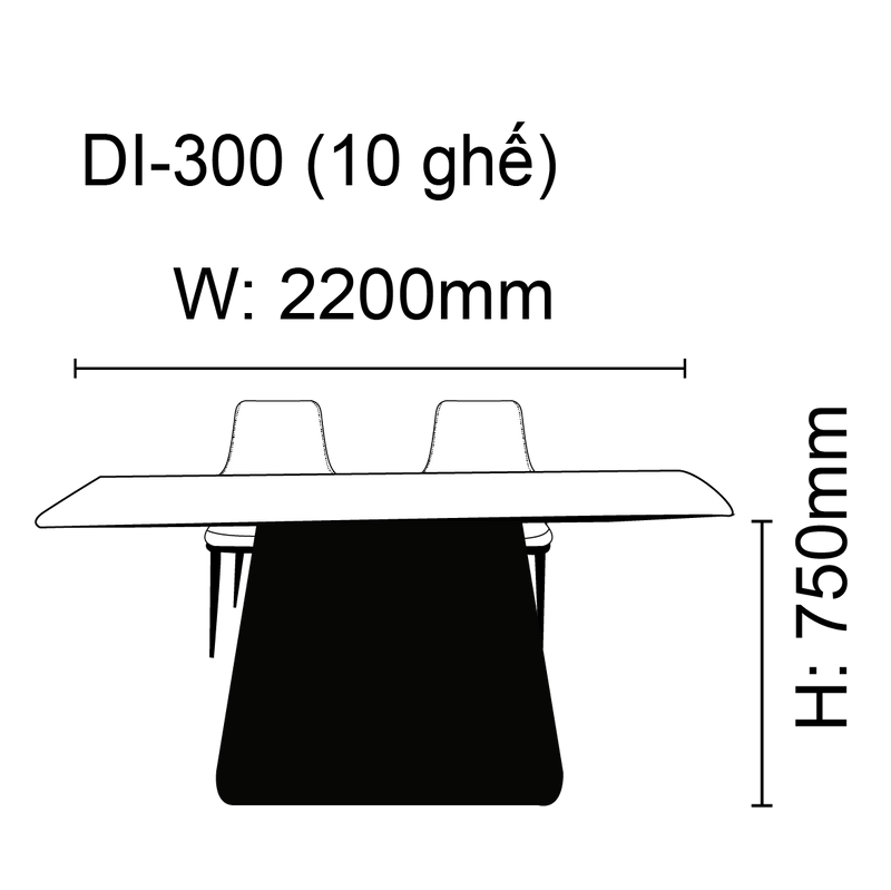 Kích thước bàn ăn size 2.2m (W-D-H): 220*110*75 cm