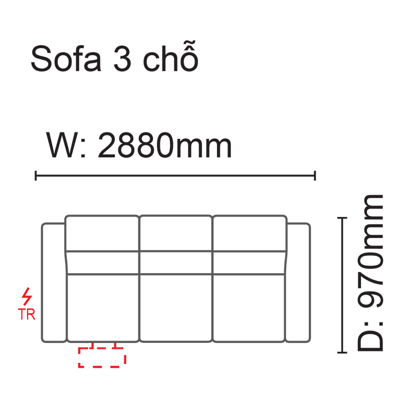 Kích thước (W-D-H):288*97*96 cm