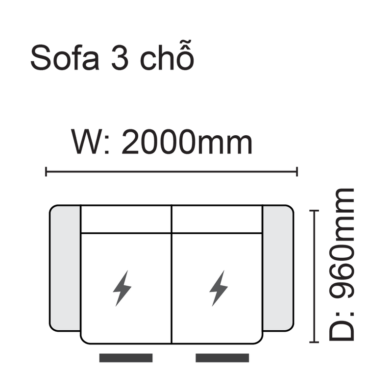 Kích thước (W-D-H): 200*96*100 cm